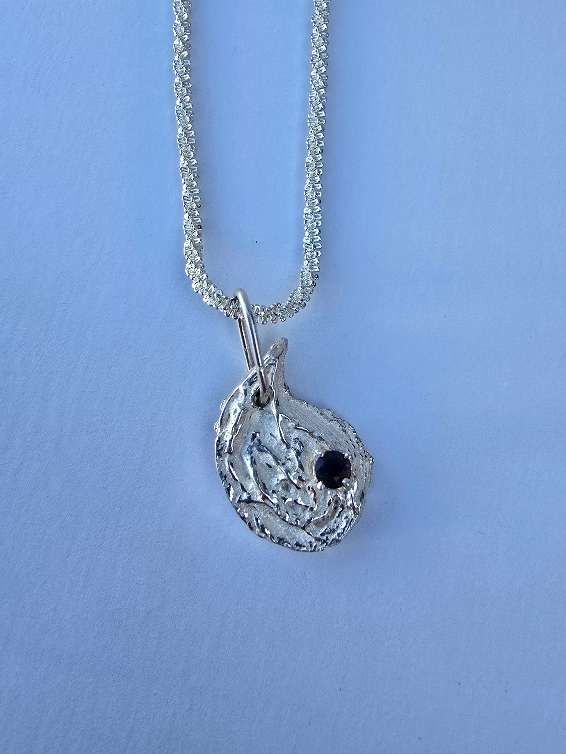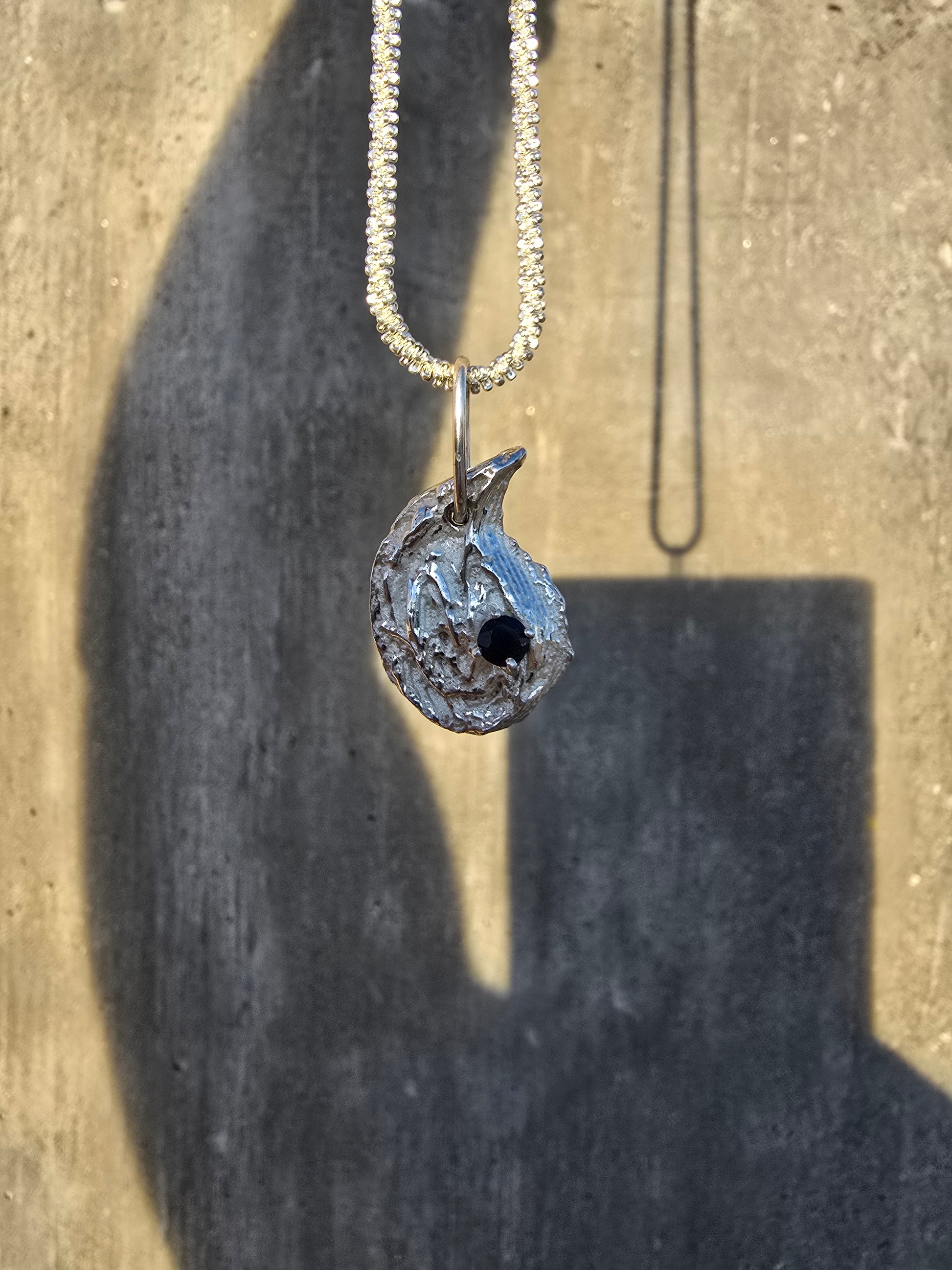 Hecho en plata .940 el dije, con una técnica especial que no se puede volver a repetir, esta pieza única tiene montado un Opalo etíope, cadena de 46cm largo total.