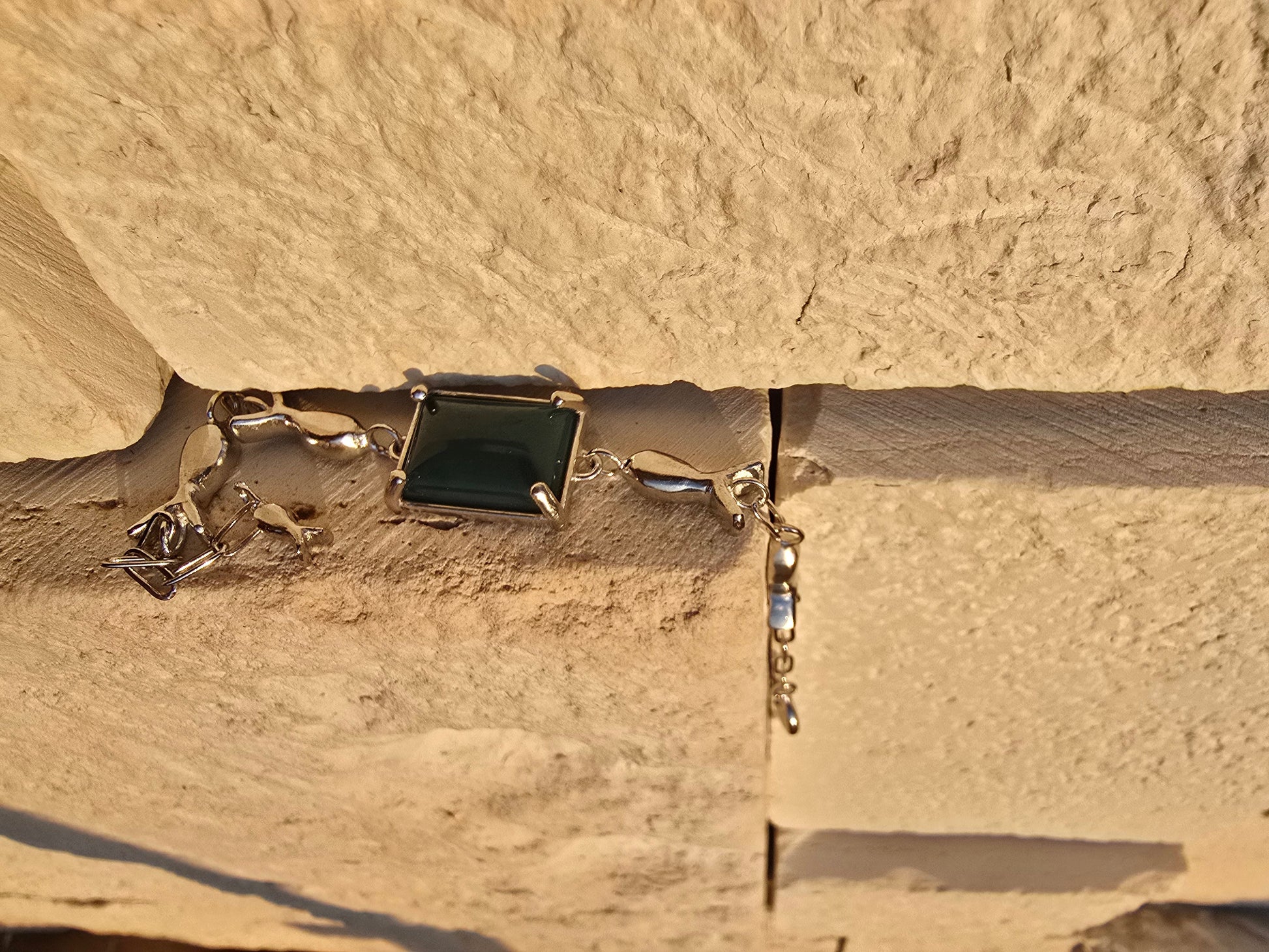 Pulsera hecha en plata .925, chapa de rodio, con piedra ágata en el centro
